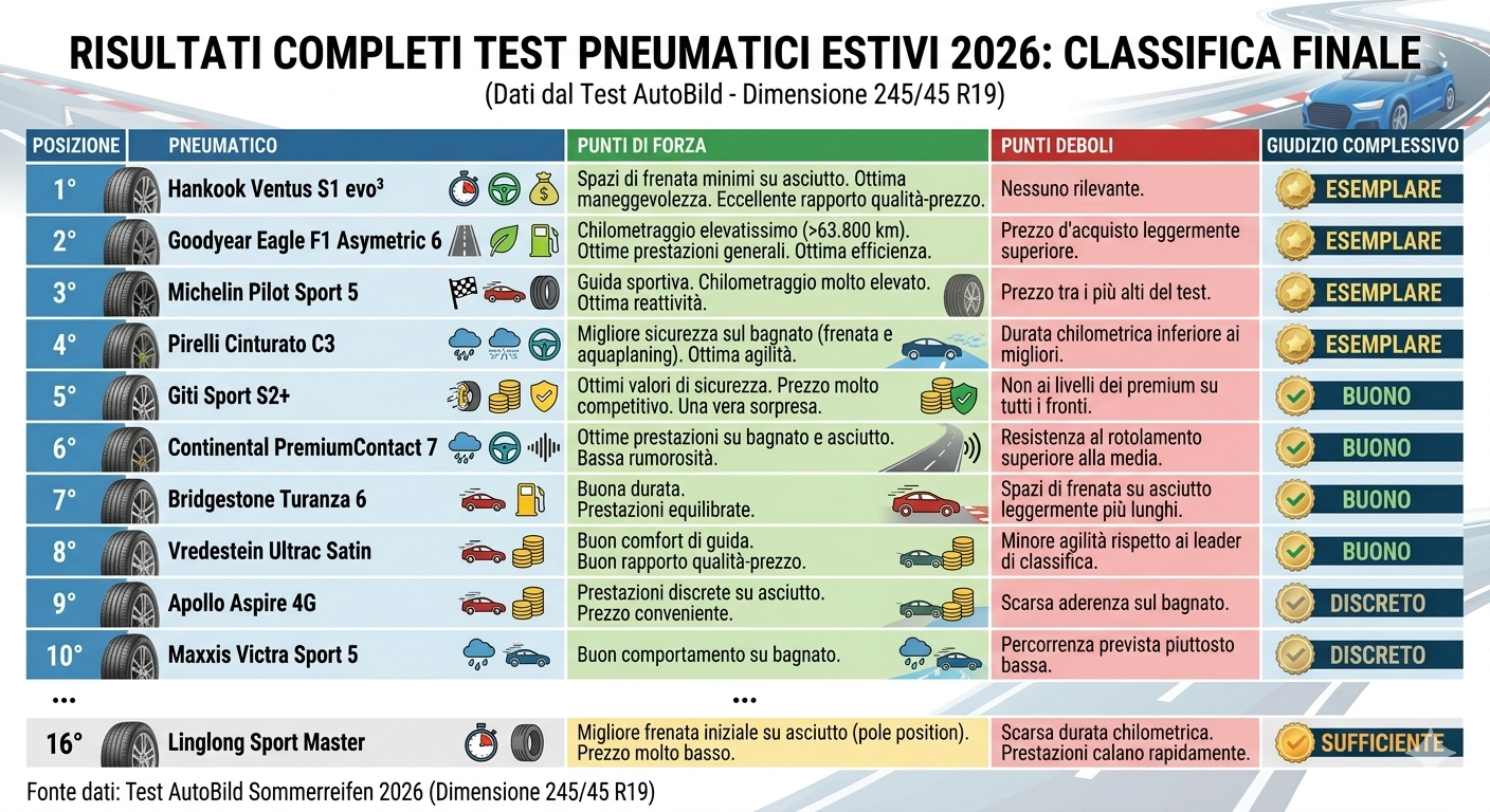 Fonte dati: Test AutoBild Sommerreifen 2026 (Dimensione 245/45 R19)